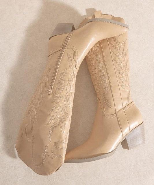 Women's Cowboy Boots Mid Calf Cowgirl Boots Embroidery Stitched Square Toe Western Boots Classic Western Booties for Women Trending Cowgirl Boots Concerts