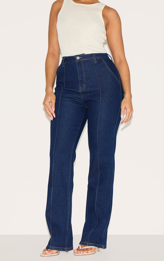Petite Dark Indigo Contrast Seam Straight Leg Jeans