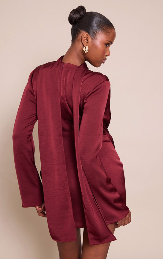 Navy Slinky One Sleeve Drape Detail Mini Dress