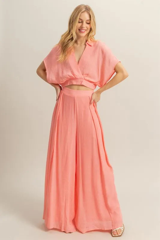 HYFVE Kimono Sleeve Crop Top and Wide Leg Pants Set
