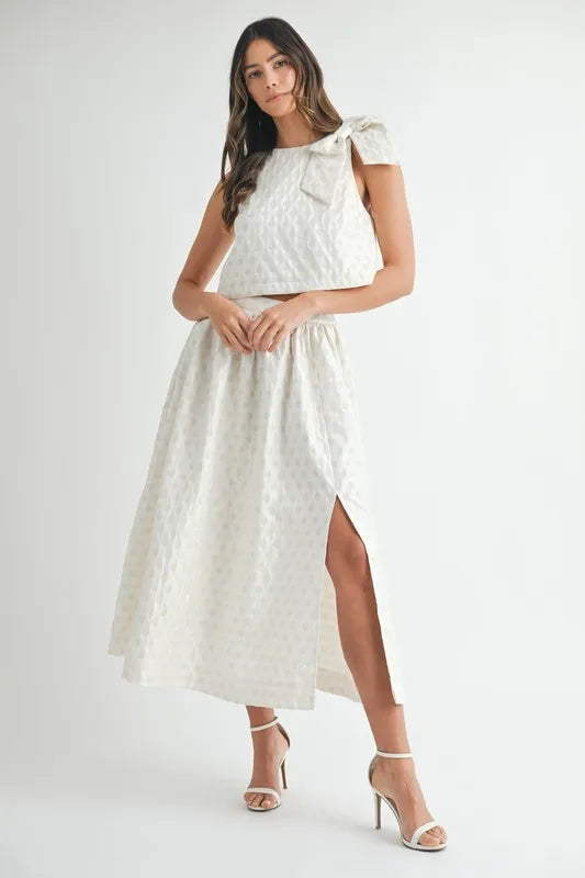 Taffeta Polka Dot Shoulder Ribbon Top and Skirt Set