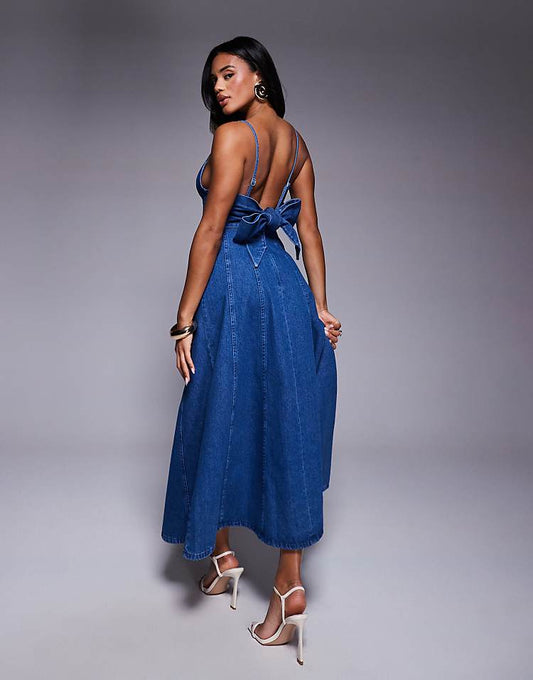 LUXE Heart Cup Denim Maxi Dress