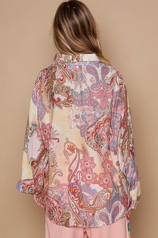 Sweet Paisley Button-Down Long Sleeve Print Shirt