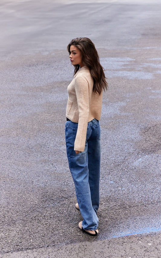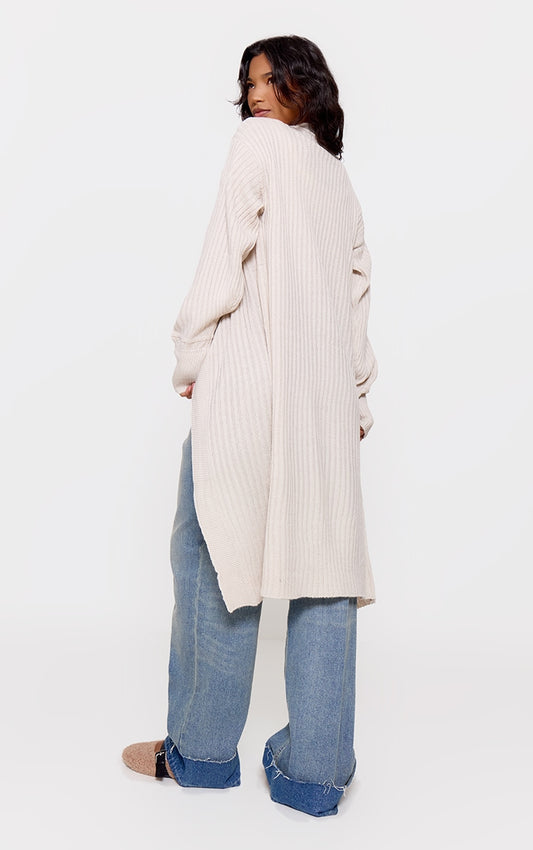 Beige Soft Textured Knit Button Up Collar Detail Cardigan