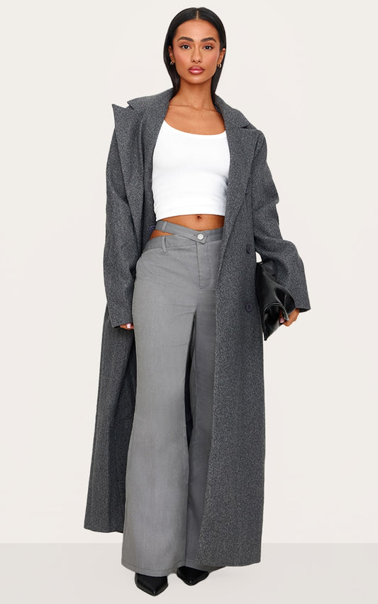 Petite Grey Woven Asymmetric Straight Leg Trousers