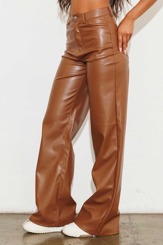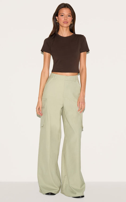 Brown Tailored Thick Belted Waistband Detail Wide Leg Trousers