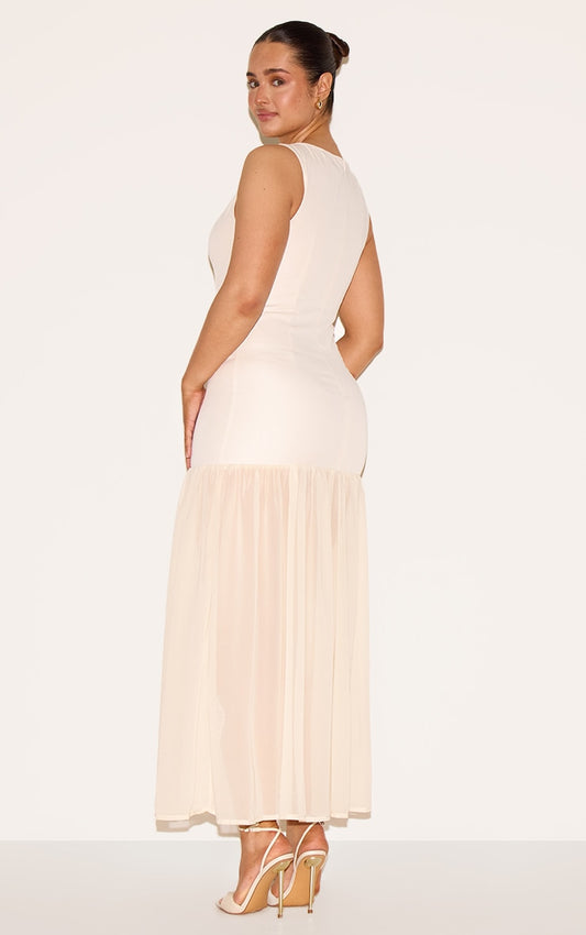 Full Size Cream Boat Neck Dropped Waist Maxi Dress