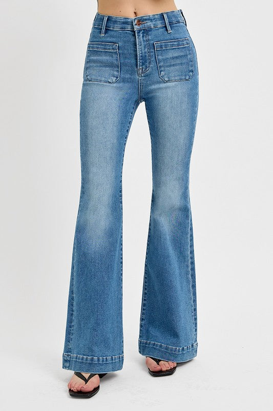 RISEN Full Size Front Patch Pocket Flare Jeans Plus Size