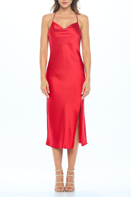 Made in USA Satin Bias Slip Dress with Slit
