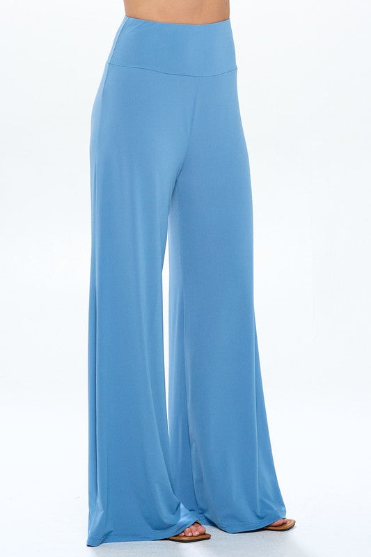 Made in USA Solid Wide Leg Pants w Thick Waistband