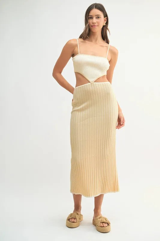 MABLE Ribbed Knit Color Block Cutout Midi Dress