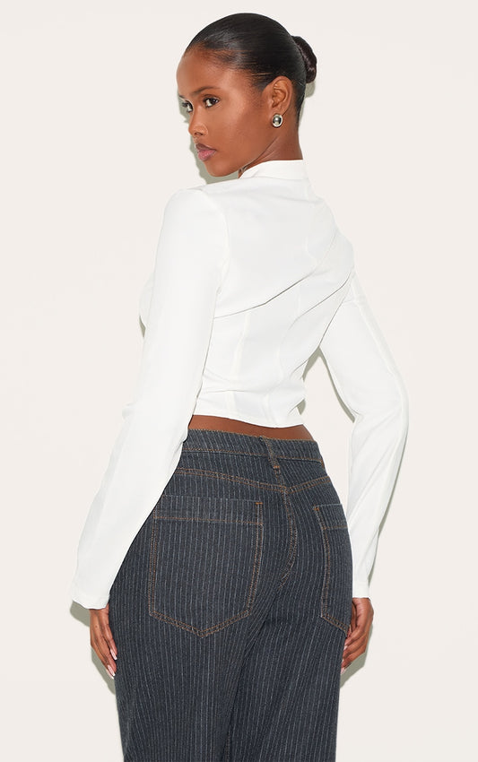 Navy Bengaline Pinstripe Flared Hem Long Top