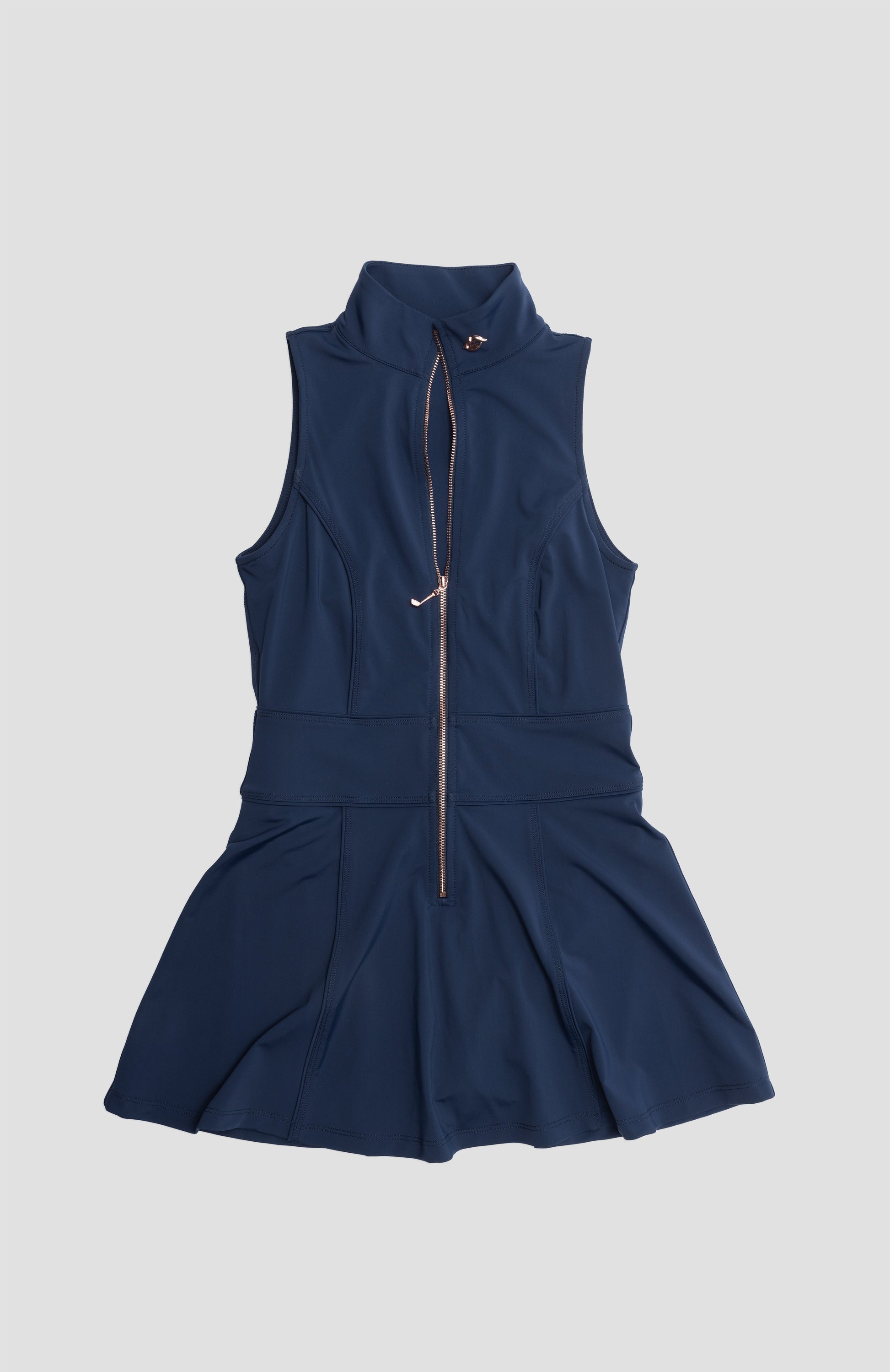 Turn heads and break par in the ultimate sculpting women’s golf dress—where sleek design meets all-day performance. Crafted to flatter every body, this women's sport dress features a contour-enhancing fit, a zip-front neckline, and clean lines that create a bold yet feminine silhouette. Built-in shorts offer freedom to move, while the integrated bra provides lift and support with zero fuss.