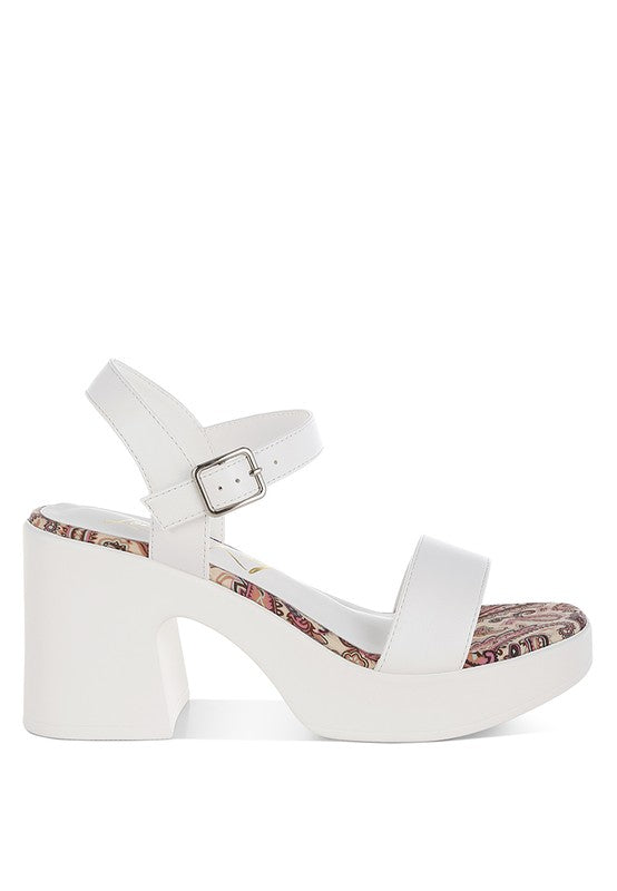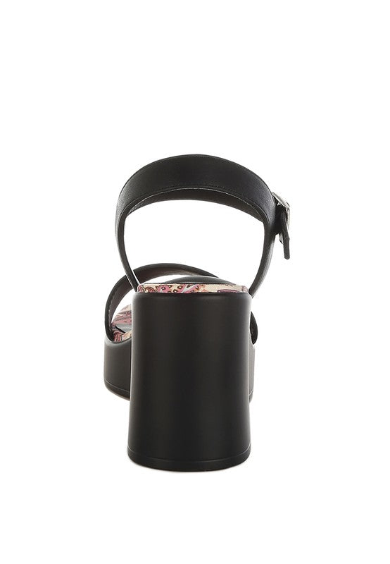 Look chic and fabulous in these pin buckle block heel sandals! This stylish pair with contrasting printed insole, an elevating platform sole, and a fancy pin buckle ankle strap will give you the perfect blend of class and sass. Get ready to wow the crowd!
