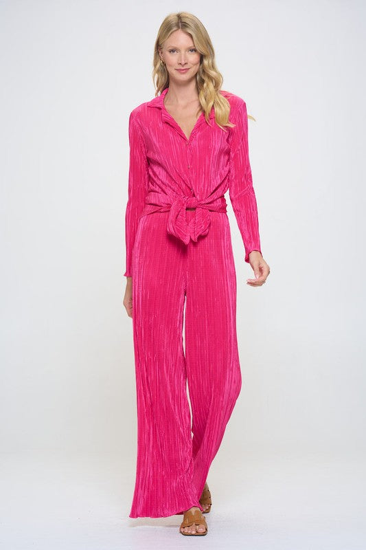 Made in USA Vibrant Plisse Lined Straight Pants