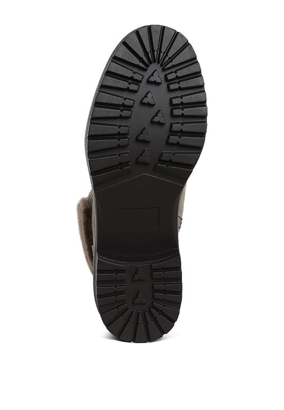 Serve some serious looks with these faux leather, round-toe ankle boots. Featuring a cosy faux fur collar, a 2-inch low block heel, and an anti-skid lug sole platform, they're perfect for comfort during walks or outdoor adventures in cooler weather. Add these eyelet lace-up boots to your cart for a foolproof finish.